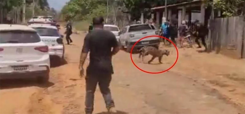 Onça causa caos ao pular de muro enquanto é caçada por policiais; Veja vídeos