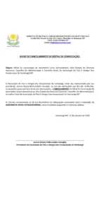 O referido cancelamento se dá em decorrência de adequações necessárias para a realização da ASSEMBLÉIA GERAL EXTRAORDINÁRIA, como finalidade resguardar o interesse público.
