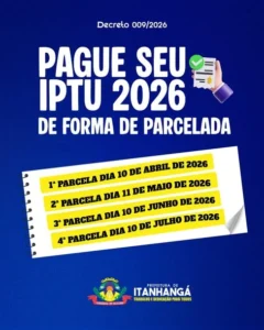 A Prefeitura de Itanhangá regulamentou o IPTU 2026 por meio do Decreto nº 009/2026, com base na Lei Complementar nº 005/2005, que institui o Sistema Tributário do Município.