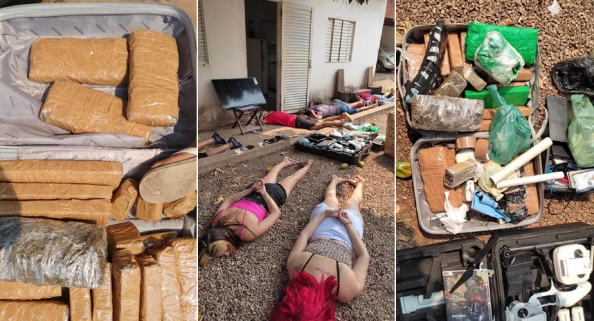 Polícia Militar prendeu na manhã de quinta-feira (22) ao menos 8 membros de uma quadrilha envolvida com o tráfico de drogas no bairro Três Barras, em Cuiabá. Malas com cocaína, maconha e armas foram apreendidas com o grupo.